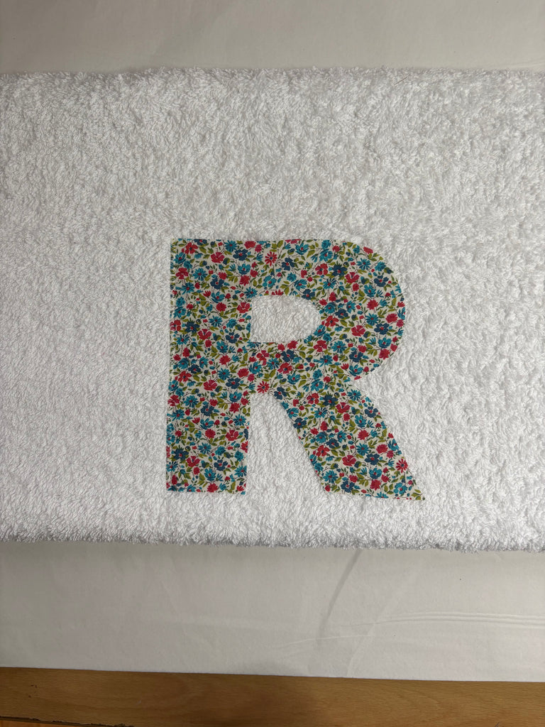 Roll up, roll up all you R's looking for a personalised bath sheet to keep you powder dry. This beautiful R is in our lovely Liberty Fabric, Secret Garden and is in as new condition.